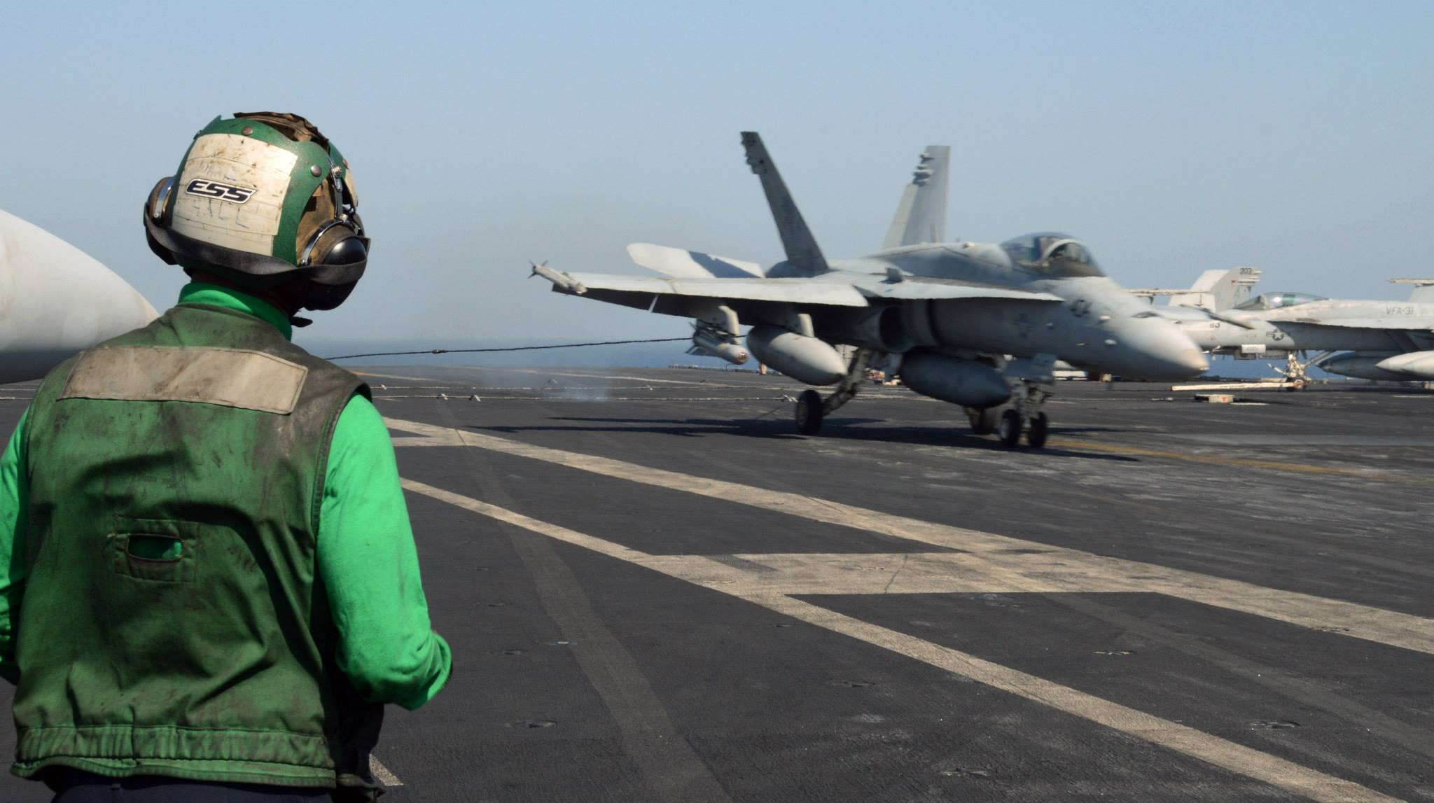 FA18 Super Hornet lands aboard the aircraft carrier USS George HW Bush