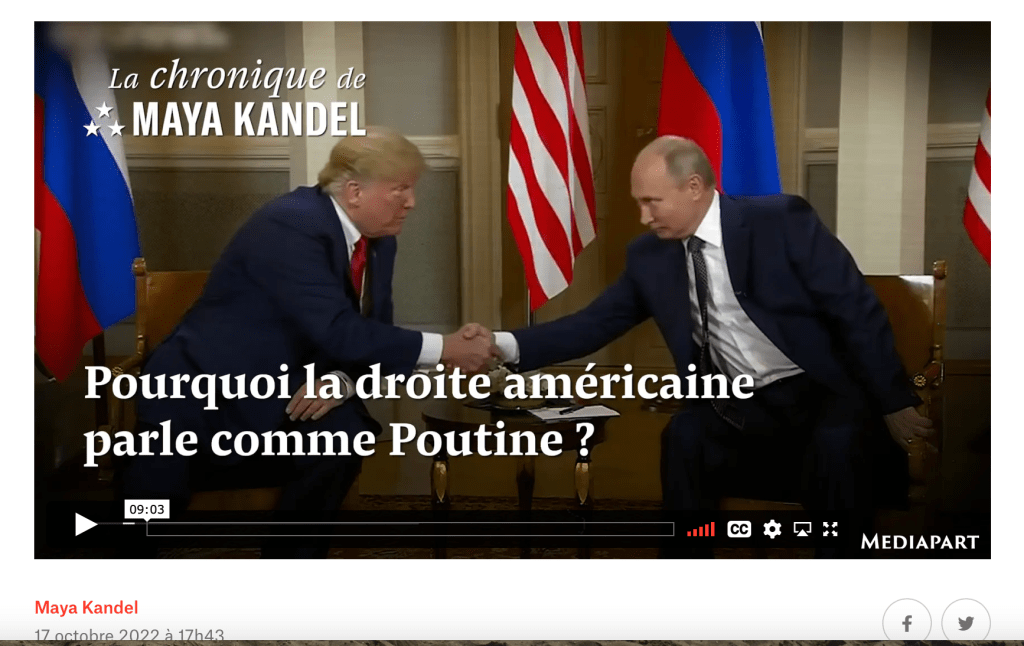 Sur les convergences entre l’extrême-droite américaine et Poutine, j’avais écrit cet article pour Le Monde en 2018 au moment du sommet Trump Poutine (« Trump et Poutine convergent vers une vision alternative des relations internationales« ), en accès libre ici.