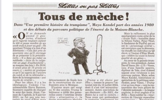 Dans l’Orient-Le Jour: Une première histoire du trumpisme est un ouvrage qui frappe par la clarté de sa structure et la densité de son contenu. En effet, Maya Kandel parvient à ordonner une masse considérable de faits et d’idées en un récit historique limpide, qui conjugue profondeur analytique et sens de la synthèse. Elle donne ainsi à comprendre, dans toute sa complexité, ce que le trumpisme dit de notre époque. Celui-ci apparaît comme une véritable révolution – une révolution inquiétante, car, comme le souligne l’autrice : « Contrepied de l’esprit des Lumières, de la rationalité et de la science, le trumpisme est (…) un nouvel obscurantisme. »